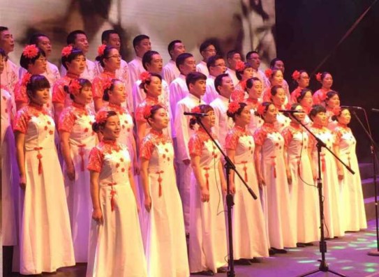 图为宁波百隆合唱队参赛演出现场